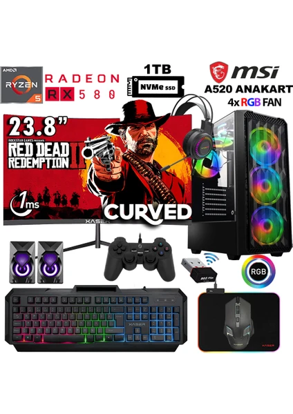 Xaser Armor X60 Ryzen 5 5500 32GB Ram 1tb M.2 Nvme SSD 8gb RX580 24″ Curved Masaüstü Oyuncu Bilgisayarı