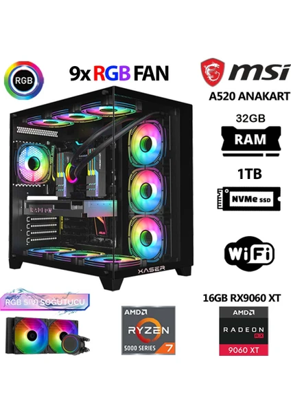 Xaser Lexus X740 Ryzen 7 5700X 32GB Ram 1tb M.2 Nvme SSD 16GB RX9060 Xt Sıvı Soğutmalı Hazır Oyuncu Sistemi