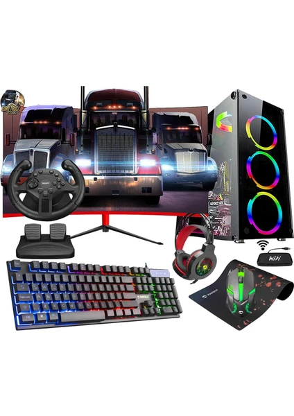 | Öne Çıkan Özellikler | Temperli Cam Oyuncu Kasası, 23.8″ FullHD Curved Monitör, RGB Klavye + Mouse, Oyuncu Kulaklık, Mousepad, USB Wi-Fi Adaptörü, Pedallı Direksiyon Seti |
