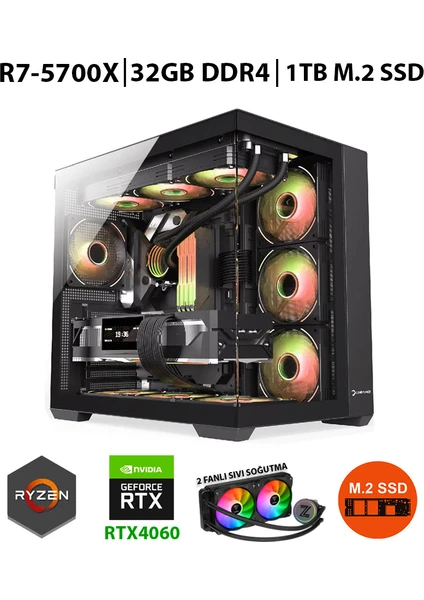 Zeiron Mirage X32 Ryzen 7 5700X 32GB Ram 1TB M.2 Nvme SSD 8GB RTX4060 Sıvı Soğutmalı Oyuncu Bilgisayarı